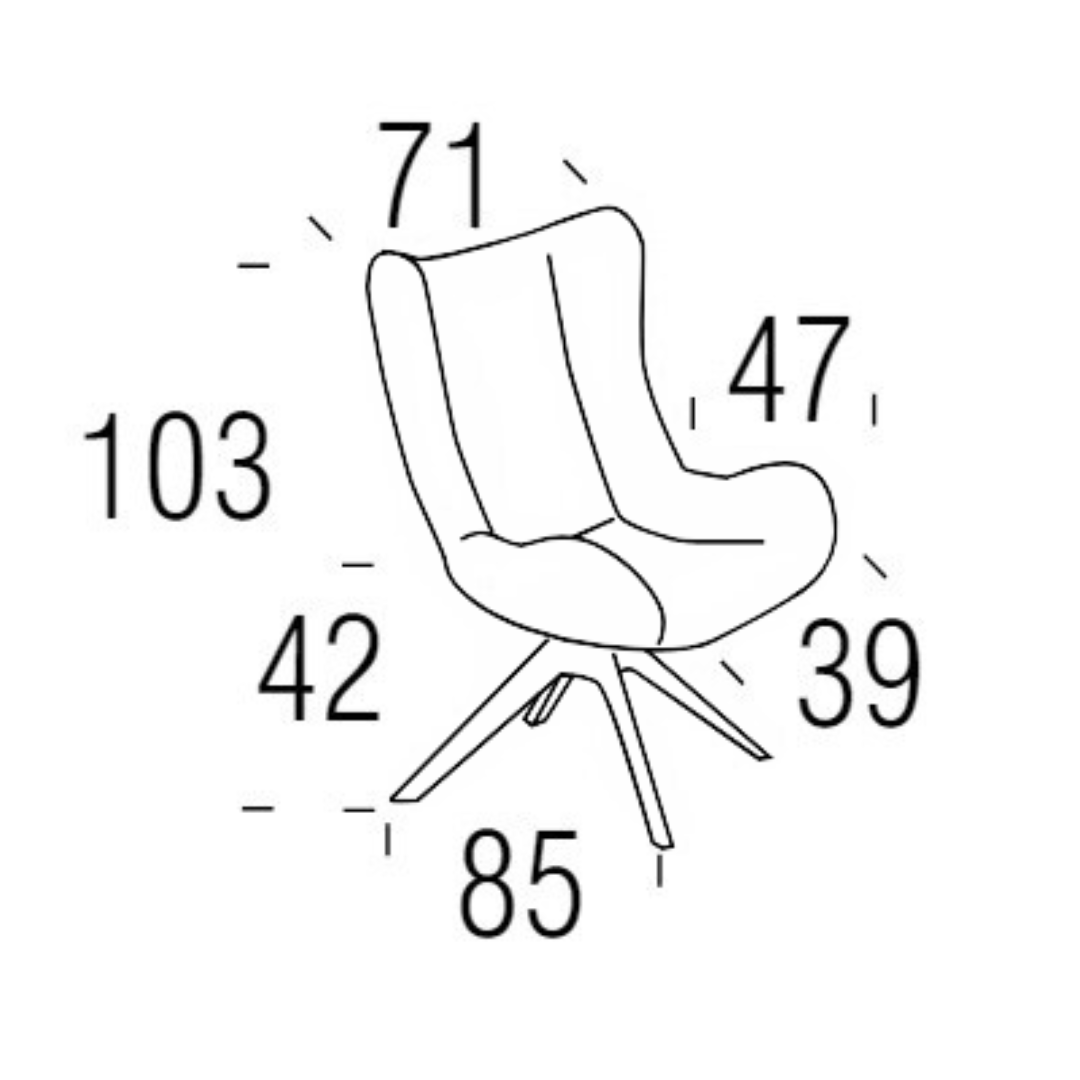 The Lase armchair with a metal swivel base combines sophisticated, enveloping design with a stable, smooth-rotating base. Its structure integrates the seat and backrest into one continuous piece, creating a sense of lightness and visual harmony. The metal swivel base adds a modern, elegant touch, making it perfect for contemporary spaces that seek both functionality and style.