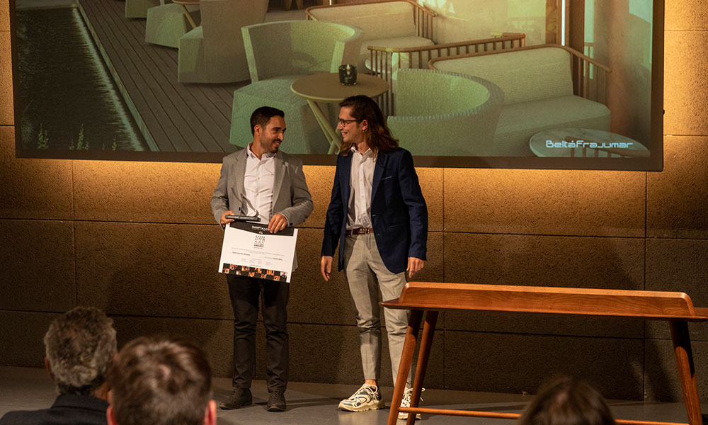 Le premier prix de la VIIe édition des Prix InterCIDEC a été attribué au projet Asante Sana conçu par Carlos Sánchez Manzano. La proposition est basée sur les 4 éléments essentiels : le feu, l’eau, l’air et la terre, alliant tradition et nature aux nouvelles technologies, en la transformant en un espace pour se rencontrer, se reposer ou se déconnecter du quotidien. Un espace sur le toit qui respecte l’environnement. Le prix a été remis par Andoni Díaz, président du Conseil général des collèges officiels de décorateurs et d’architectes d’intérieur CGCODDI.